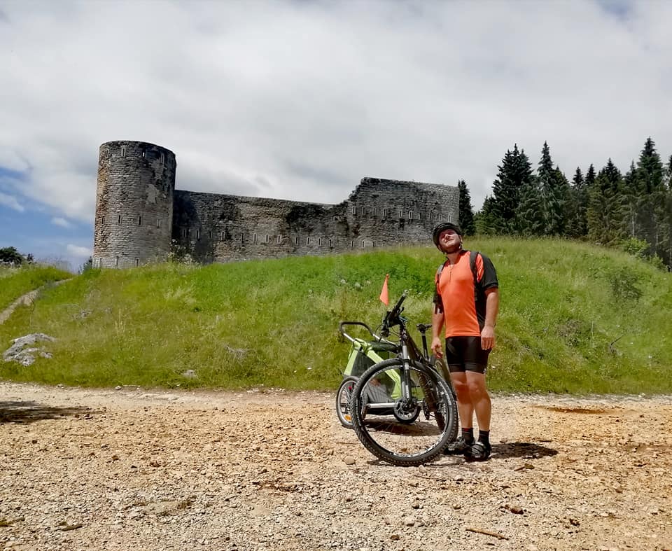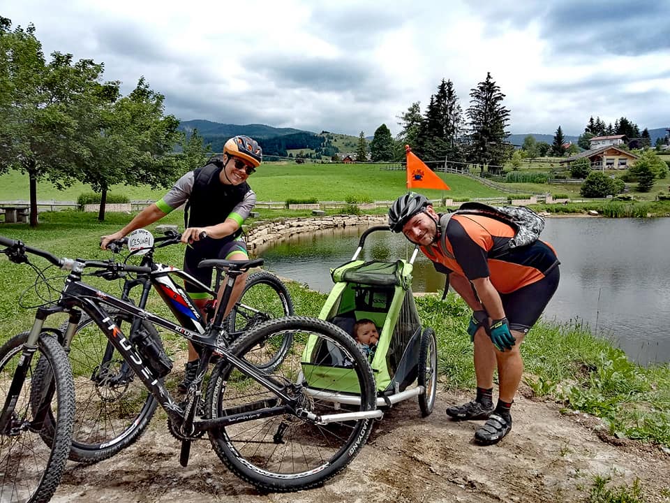a piedi, e-bike, bici con carrellino, zaino portabambino