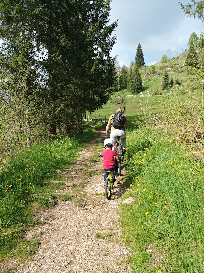 Proseguendo lungo il piazzale del Palaciclamino si segue la strada asfaltata fino a raggiungere nuovamente la strada sterrata che ci condurrà fino all’abitato di Canove attraversando boschi e prati sconfinati.